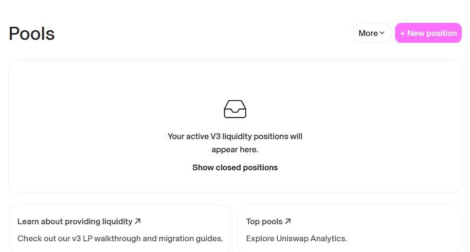 Step 1: Head to the UniSwap Pools page and select New Position. Click the drop-down to select SWISE to pair vs ETH.