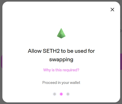 Step 2: Once the transaction enabling sETH2 spending is completed, you then need to allow sETH2 for swapping (simply signing a message rather than an on-chain transaction).